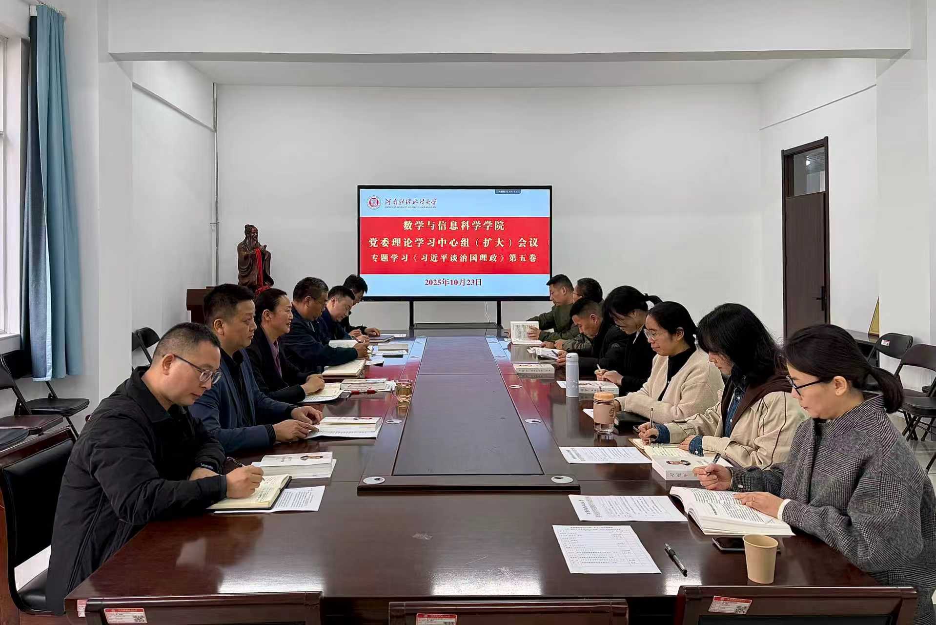 10月23日下午,学院召开党委理论学习中心组(扩大)会议,专题学习《习近平谈治国理政》第五卷。党委书记陈俊敏、院长李志强等全体班子成员和党政办、教学办、各党支部主要负责人参加会议。陈俊敏主持会议。