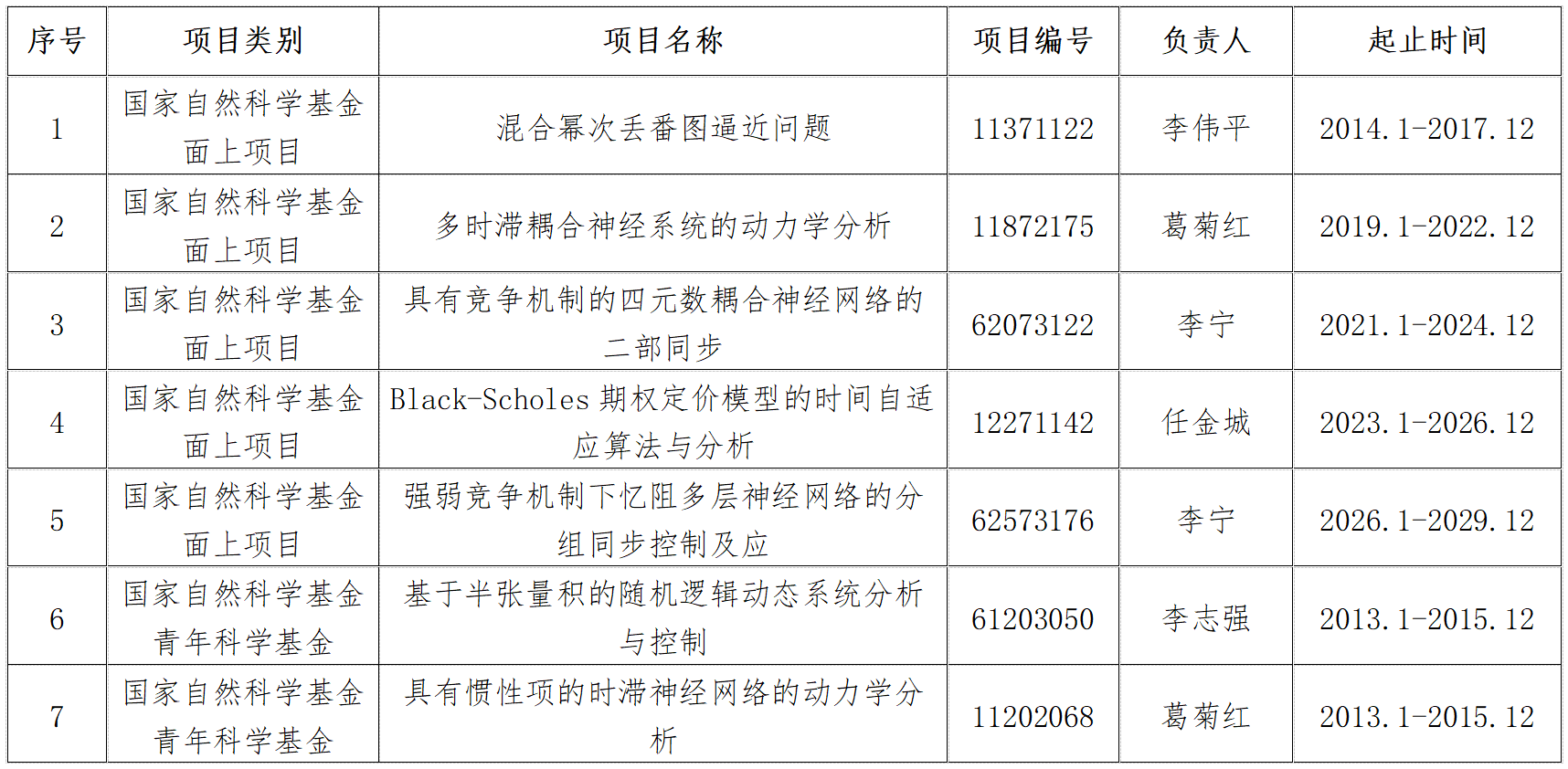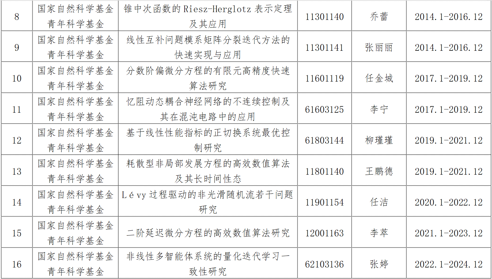 我院获国家自然科学基金立项项目名单